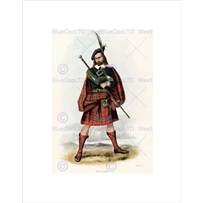 Wee Blue Coo Painting Portrait Highland Clan Scotland Tartan Maclean Wall Art Print