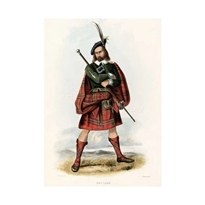 Wee Blue Coo Painting Portrait Highland Clan Scotland Tartan Maclean Wall Art Print