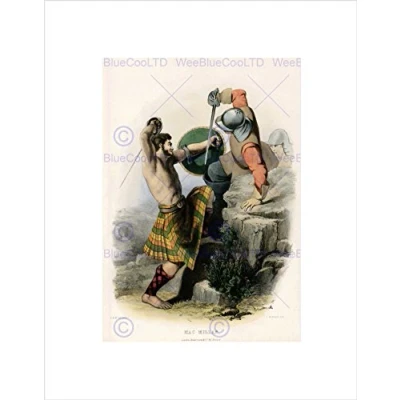 Wee Blue Coo PAINTING PORTRAIT HIGHLAND CLAN SCOTLAND TARTAN MACMILLAN FRAMED PRINT B12X12520