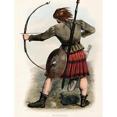 Wee Blue Coo Painting Portrait Highland Clan Scotland Tartan Macquarrie Art Print Poster Wall Decor 12X16 Inch