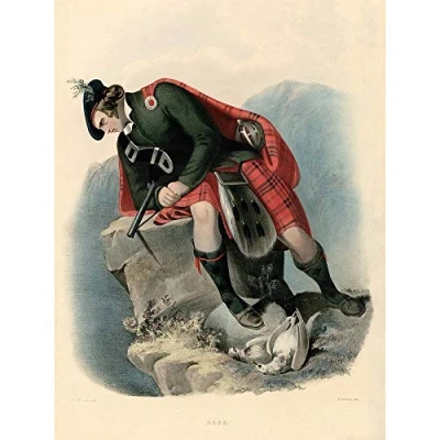 Wee Blue Coo Painting Portrait Highland Clan Scotland Tartan Ross Art Print Poster Wall Decor 12X16 Inch