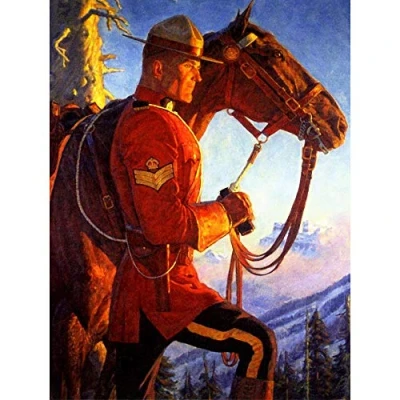 Wee Blue Coo Painting Portrait Mounted Police Mountie Mounty Horse Canada Art Print Poster Wall Decor 12X16 Inch