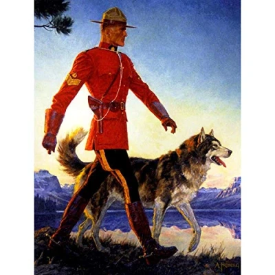 Wee Blue Coo Painting Portrait Mounted Police Mounty Mountie Wolf Husky Canada Art Print Poster Wall Decor 12X16 Inch