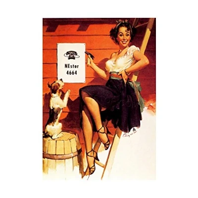 Wee Blue Coo Painting Portrait Pin Up Girl Diy Puppy Sign Phone USA Wall Art Print