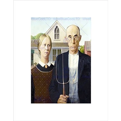 Wee Blue Coo PAINTING PORTRAIT STUDY WOOD AMERICAN GOTHIC BLACK FRAMED ART PRINT B12X3687