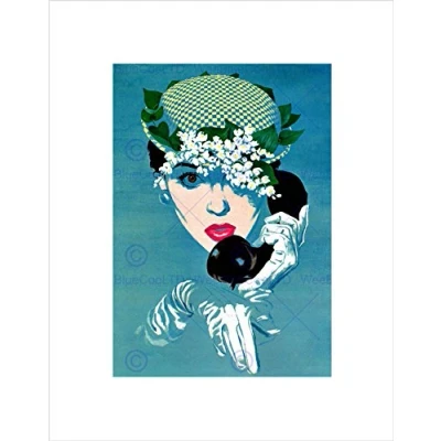 Wee Blue Coo Painting Portrait Woman Telephone Hat Red Lips Glove Wall Art Print