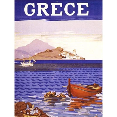 Wee Blue Coo Painting Postcard Grece Greece Greek Coast Ship Sail Art Print Poster Wall Decor 12X16 Inch