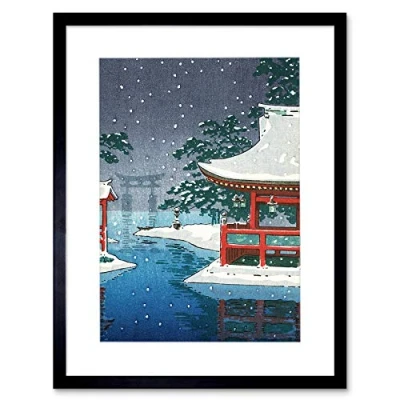 Wee Blue Coo Painting Postcard Japan Pagoda Torii Shinto Temple Picture Framed Wall Art Print