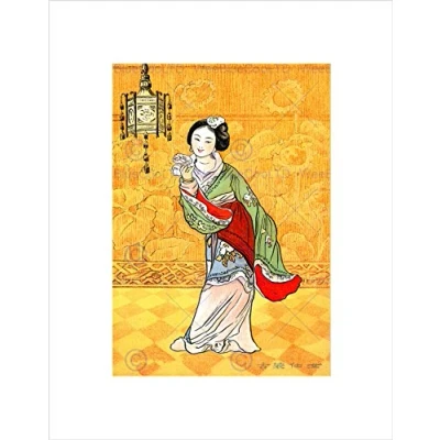 Wee Blue Coo Painting Postcard Japanese Woman Geisha Lantern Japan Wall Art Print