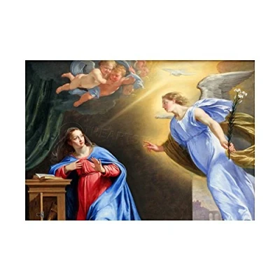 Wee Blue Coo Painting Religious Angel Annonciation Champaigne Cherub Wall Art Print