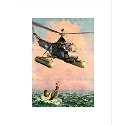 Wee Blue Coo Painting Rescue Scene Helicopter Ocean Pilot Crash Wall Art Print
