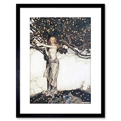 Wee Blue Coo PAINTING RHINEGOLD AND THE VALKYRIES WOMAN TREE CATS FRAMED ART PRINT F97X12155