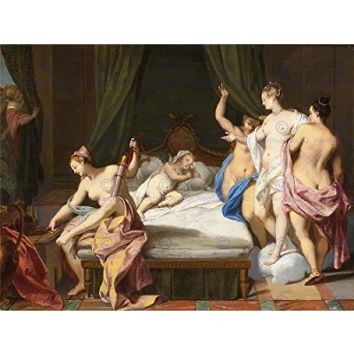 Wee Blue Coo Painting Roman Vleughels Venus Three Graces Cupid Wall Art Print