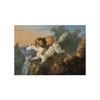Wee Blue Coo Painting Saleh Lion Attacking A Horse Wall Art Print