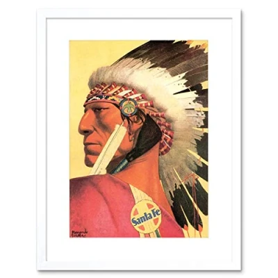 Wee Blue Coo Painting Santa Fe Villa Indian Chief Native American Framed Wall Art Print