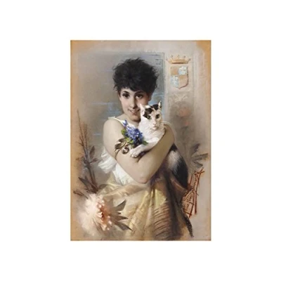 Wee Blue Coo Painting Schlimarski Young Woman With Cat 12x16 Wall Art Print