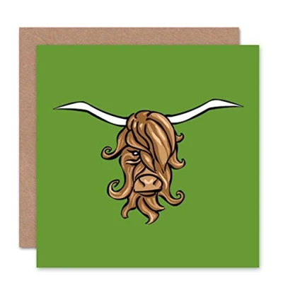 Wee Blue Coo PAINTING SCOTTISH HIGHLAND COW BULL HORNS COOL BLANK GREETINGS CARD