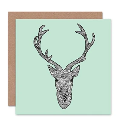 Wee Blue Coo PAINTING SCOTTISH HIGHLAND DEER STAG ANTLERS BLANK GREETINGS CARD