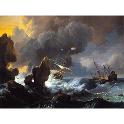 Wee Blue Coo Painting Sea Maritime Bakhuizen Ships Distress Rocky Coast Wall Art Print