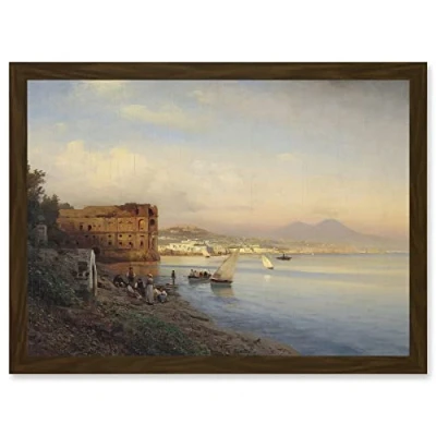 Wee Blue Coo Painting Seascape City Flamm Bay Naples Queen Palace Artwork Framed Wall Art Print A4