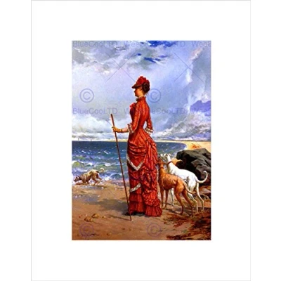 Wee Blue Coo PAINTING SEASCAPE DUPAIN ELEGANT LADY GREYHOUNDS BEACH FRAMED ART PRINT B12X4003