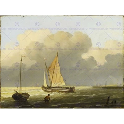 Wee Blue Coo Painting Seascape Maritime Bakhuysen Coast With Barge Wall Art Print
