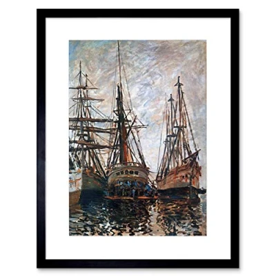 Wee Blue Coo Painting Seascape Maritime Monet Boats Harbour Framed Wall Art Print