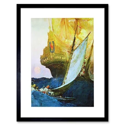 Wee Blue Coo Painting Seascape Maritime Pyle Pirate Attack Galleon Framed Wall Art Print