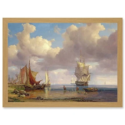 Wee Blue Coo Painting Seascape Maritime Vollmer Calm Sea Ships Shore Artwork Framed Wall Art Print A4