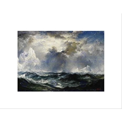 Wee Blue Coo PAINTING SEASCAPE MORAN MOONLIGHT ATLANTIC ICEBERGS FRAMED ART PRINT B12X3692