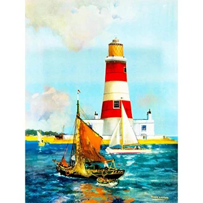 Wee Blue Coo Painting Seascape Orfordness Lighthouse Suffolk UK Boat Sea Art Print Poster Wall Decor 12X16 Inch
