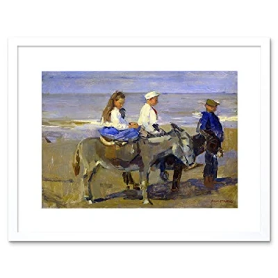 Wee Blue Coo Painting Seascape Study Beach Israels Girl Boy Donkey Framed Wall Art Print