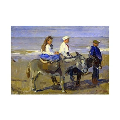 Wee Blue Coo Painting Seascape Study Beach Israels Girl Boy Donkey Wall Art Print