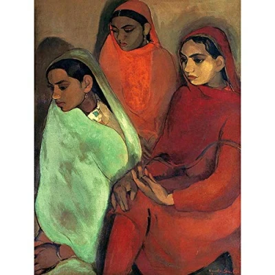 Wee Blue Coo Painting Sher Gil Group Of Three Girls Art Print Poster Wall Decor 12X16 Inch