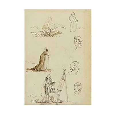 Wee Blue Coo Painting Sketch Friedrich Heads Figures Foliage Wall Art Print