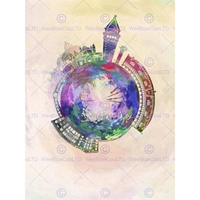 Wee Blue Coo Painting Small World Abstract Skyline Venice Italy Wall Art Print