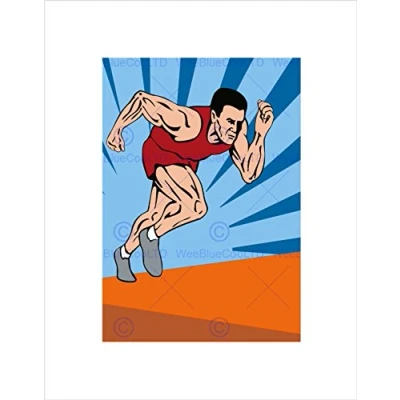 Wee Blue Coo PAINTING SPORT ATHLETICS SPRINTER RUNNING RACE SPEED FRAMED ART PRINT B12X8469