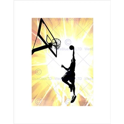 Wee Blue Coo PAINTING SPORT BASKETBALL JUMP SLAM DUNK HOOP BLACK FRAMED ART PRINT B12X8416