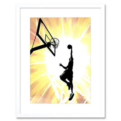 Wee Blue Coo Painting Sport Basketball Jump Slam Dunk Hoop Framed Wall Art Print