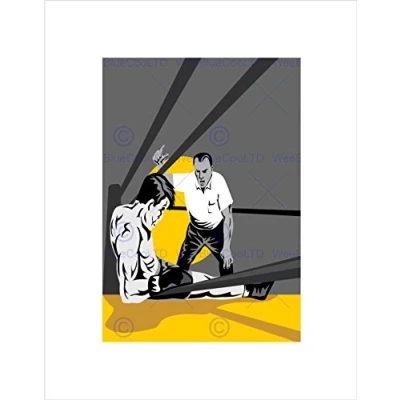 Wee Blue Coo Painting Sport Boxing Down Count Out Referee Wall Art Print