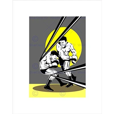 Wee Blue Coo PAINTING SPORT BOXING PUNCH ROPES FIGHT HOOK BLACK FRAMED ART PRINT B12X8441