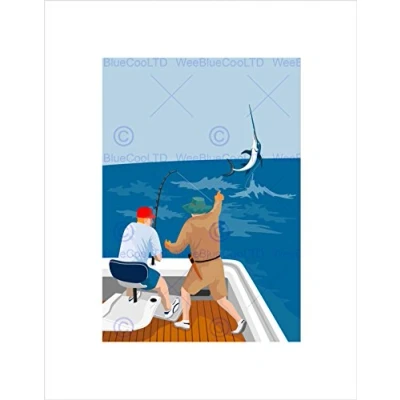 Wee BLUE Coo PAINTING SPORT FISHING ANGLING MARLIN SPIKE SEA FRAMED ART PRINT B12X8460