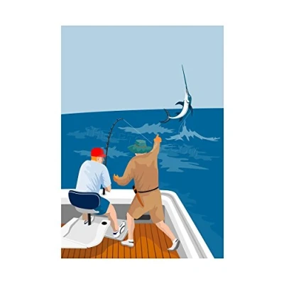 Wee Blue Coo Painting Sport Fishing Angling Marlin Spike Sea Wall Art Print