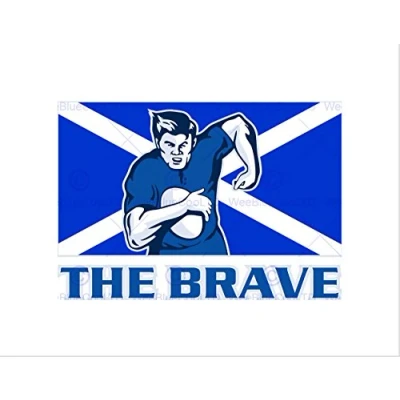 Wee Blue Coo PAINTING SPORT SCOTLAND RUGBY FOOTBALL FLAG BRAVE FRAMED ART PRINT B12X8354