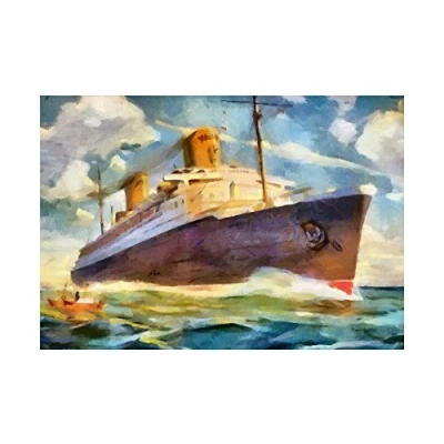 Wee Blue Coo Painting SS Bremen Ocean Liner Ship Boat Watercolour Wall Art Print