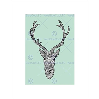Wee Blue Coo Painting Stag Deer Scottish Scotland Edinburgh Green Wall Art Print