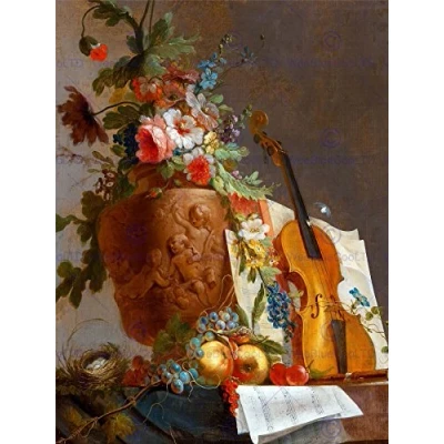 Wee Blue Coo Painting Still Life Bachelier Flowers Violin Wall Art Print