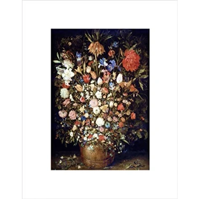 Wee Blue Coo PAINTING STILL LIFE BRUEGHEL ELDER FLOWERS WOODEN VESSEL FRAMED PRINT B12X12730