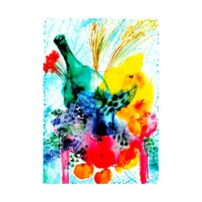Wee Blue Coo Painting Still Life Fruit Bowl Bottle Impression Surreal Wall Art Print