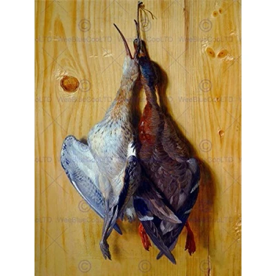 Wee Blue Coo Painting Still Life Oudry Duck Wader Hanging From Nail Wall Art Print
